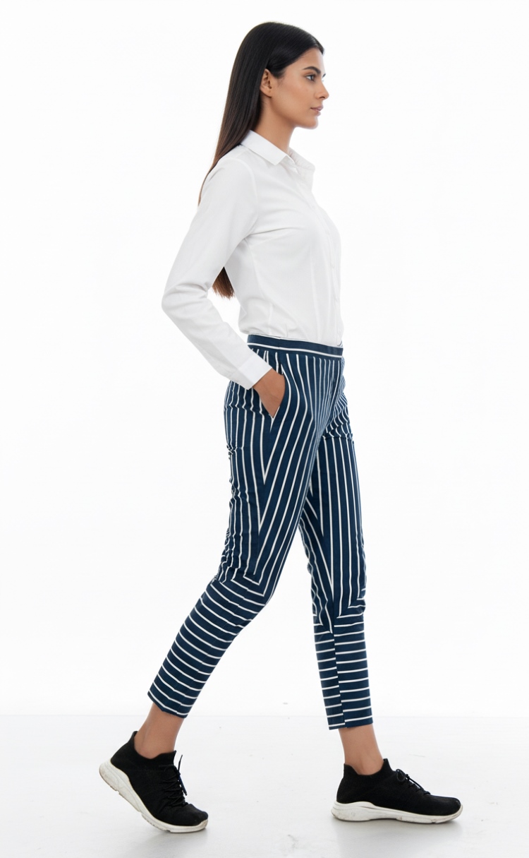 Classic Navy Blue base with crisp White pinstripe cigarette pant